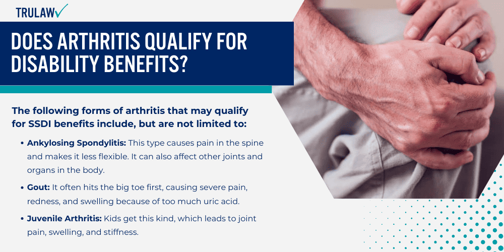 The following forms of arthritis that may qualify for SSDI benefits include, but are not limited to: