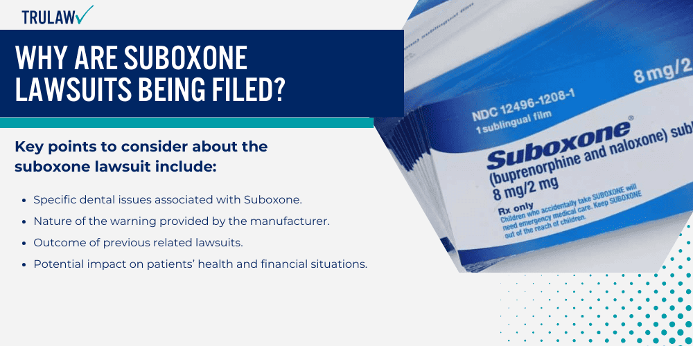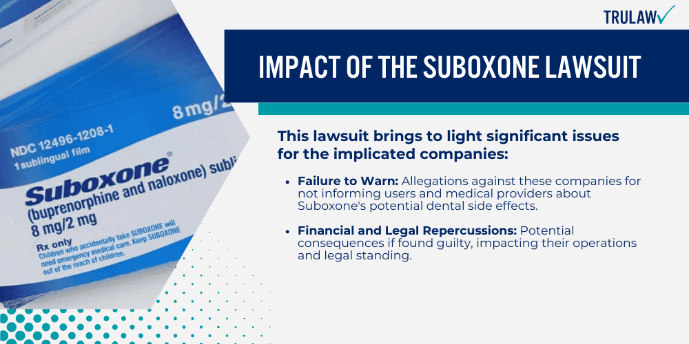 The lawsuits allege that Indivior, the manufacturer of Suboxone, failed to adequately warn users about the potential dental side effects, such as tooth decay, tooth loss, infections, cracked teeth, and cavities.